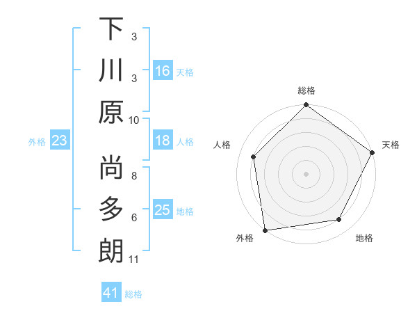 下川原 尚多朗さんを姓名の画数から五運を鑑定