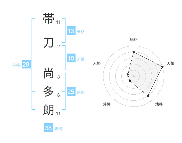 帯刀 尚多朗さんの総格は38画の4点!