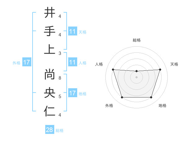 井手上 尚央仁さんを姓名の画数から五運を鑑定