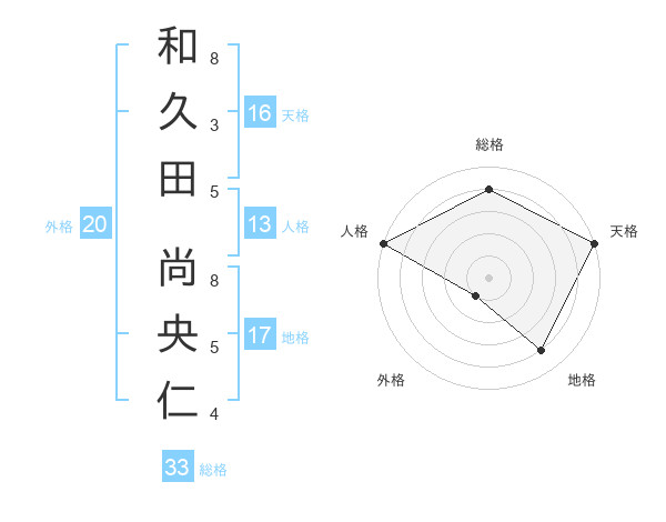 和久田 尚央仁さんを姓名の画数から五運を鑑定