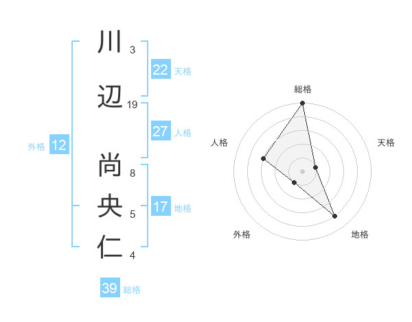 川辺 尚央仁さんの総格は39画の5点!