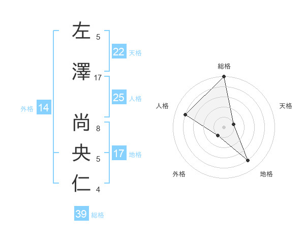 左澤 尚央仁さんを姓名の画数から五運を鑑定