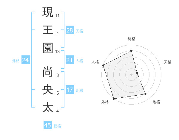 現王園 尚央太さんを姓名の画数から五運を鑑定