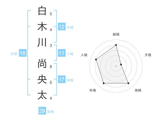 白木川 尚央太さんを姓名の画数から五運を鑑定