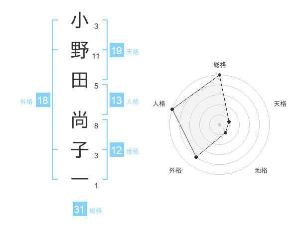 小野田 尚子一さんの天格は19画の1点!