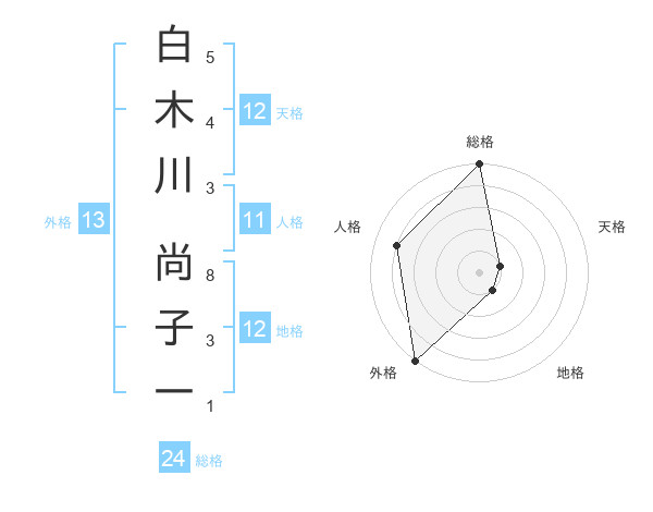 白木川 尚子一さんの総格は24画の5点!