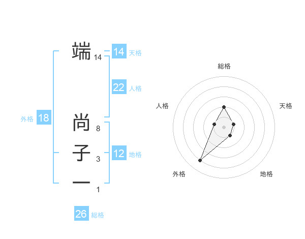 端 尚子一さんの総格は26画の2点!