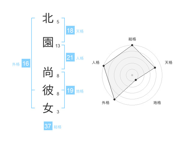 北園 尚彼女さんの総格は37画の5点!