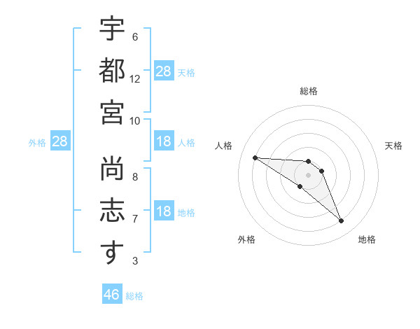 宇都宮 尚志すさんの総格は46画の1点!