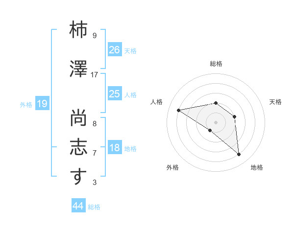 柿澤 尚志すさんを姓名の画数から五運を鑑定