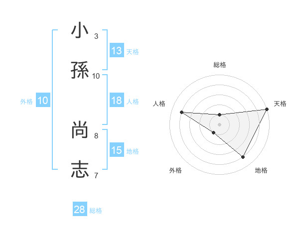 小孫 尚志さんの総格は28画の1点!