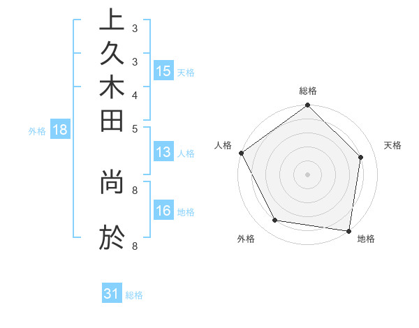 上久木田 尚於さんの総格は31画の5点!