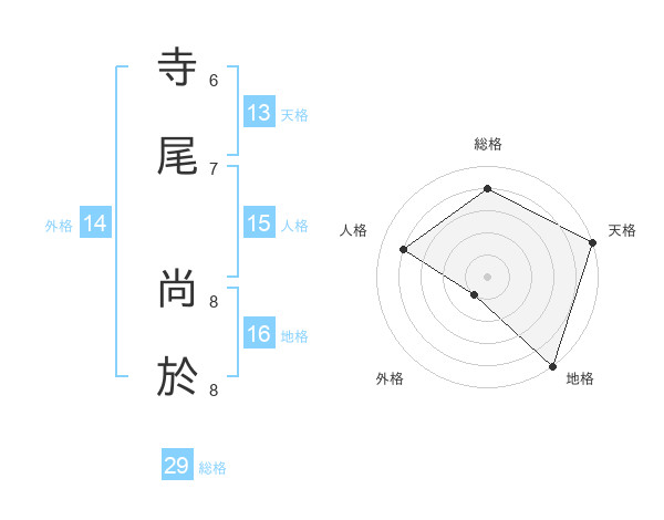 寺尾 尚於さんの天格は13画の5点!