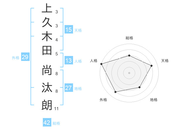 上久木田 尚汰朗さんを姓名の画数から五運を鑑定