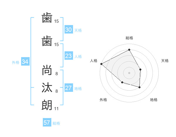 歯歯 尚汰朗さんの総格は57画の4点!