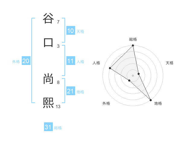 谷口 尚熙さんの総格は31画の5点!