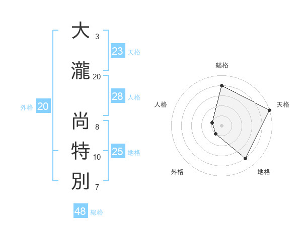 大瀧 尚特別さんを姓名の画数から五運を鑑定