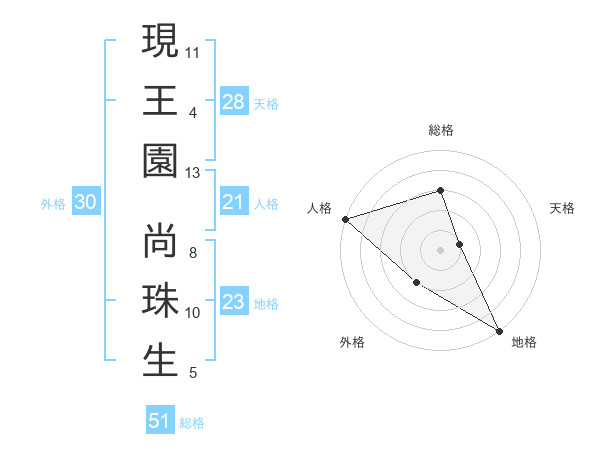 現王園 尚珠生さんの総格は51画の3点!