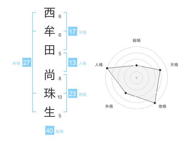 西牟田 尚珠生さんを姓名の画数から五運を鑑定