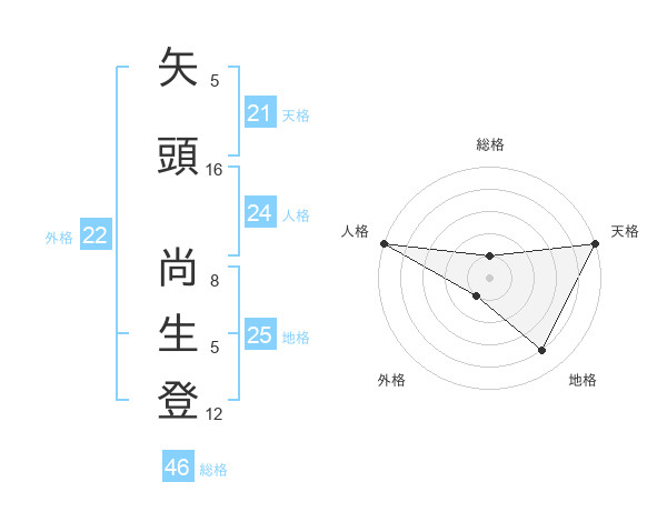 矢頭 尚生登さんを姓名の画数から五運を鑑定
