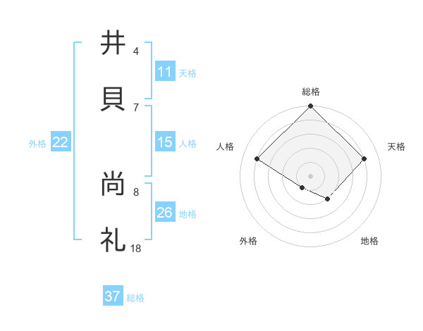 井貝 尚礼さんを姓名の画数から五運を鑑定