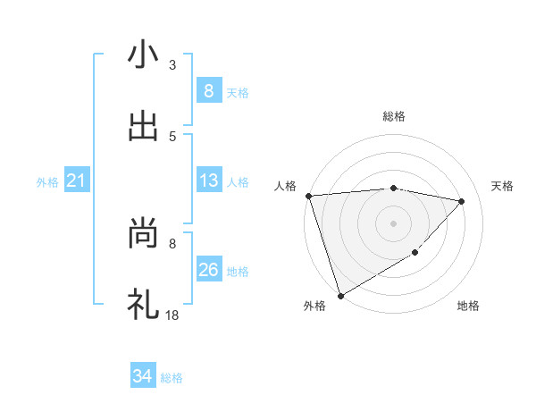 小出 尚礼さんの外格は21画の5点!