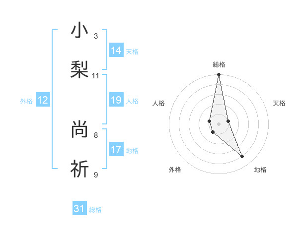 小梨 尚祈さんの総格は31画の5点!