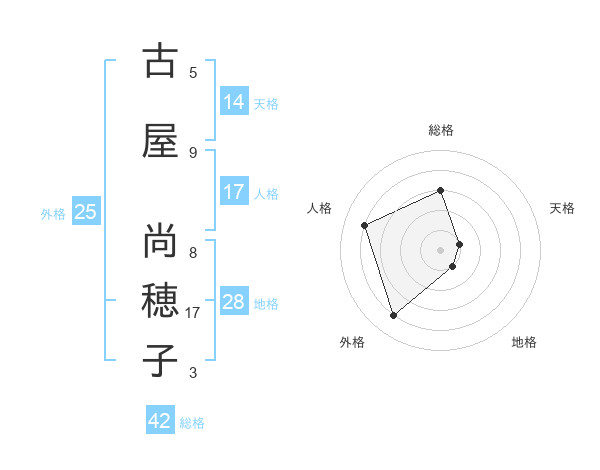 古屋 尚穂子さんを姓名の画数から五運を鑑定