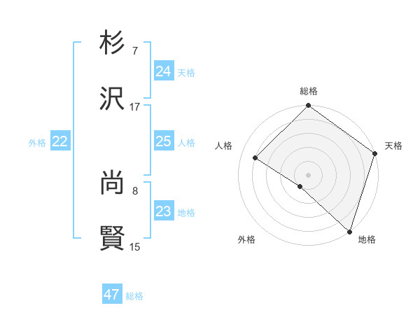 杉沢 尚賢さんを姓名の画数から五運を鑑定
