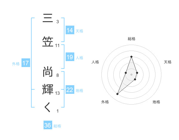 三笠 尚輝くさんを姓名の画数から五運を鑑定