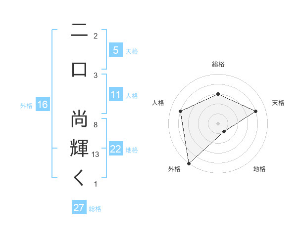 二口 尚輝くさんを姓名の画数から五運を鑑定