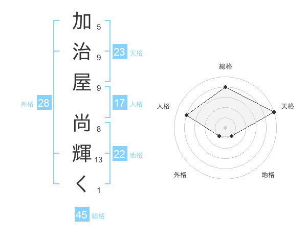 加治屋 尚輝くさんを姓名の画数から五運を鑑定