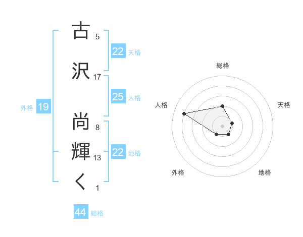 古沢 尚輝くさんを姓名の画数から五運を鑑定