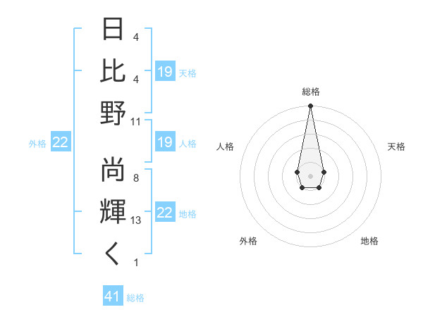 日比野 尚輝くさんの総格は41画の5点!