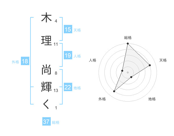 木理 尚輝くさんを姓名の画数から五運を鑑定