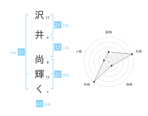 沢井 尚輝くさんの天格は21画の5点!