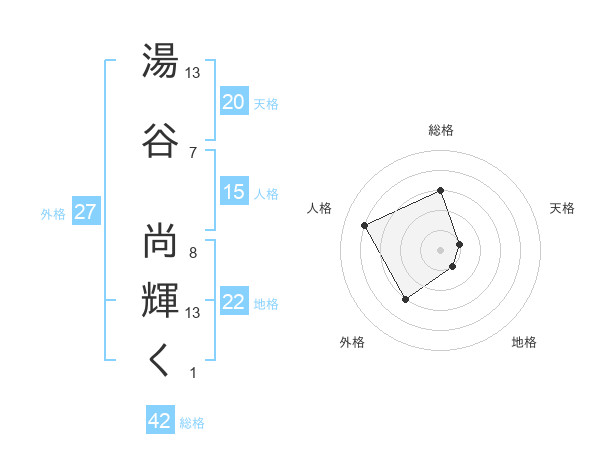湯谷 尚輝くさんを姓名の画数から五運を鑑定