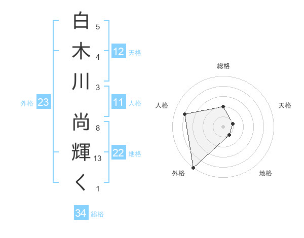 白木川 尚輝くさんを姓名の画数から五運を鑑定