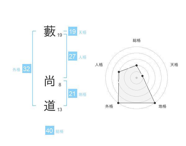 藪 尚道さんの外格は32画の5点!