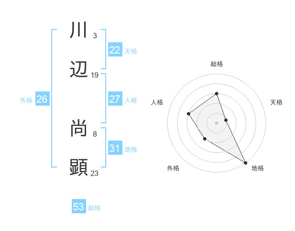 川辺 尚顕さんを姓名の画数から五運を鑑定
