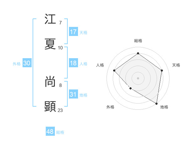 江夏 尚顕さんを姓名の画数から五運を鑑定