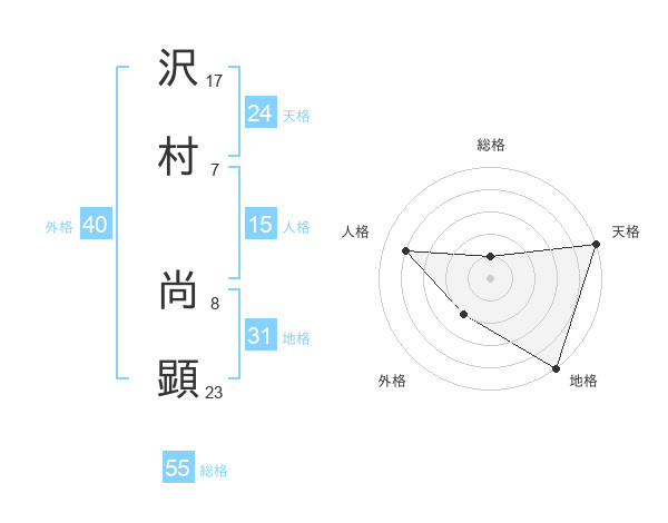 沢村 尚顕さんを姓名の画数から五運を鑑定