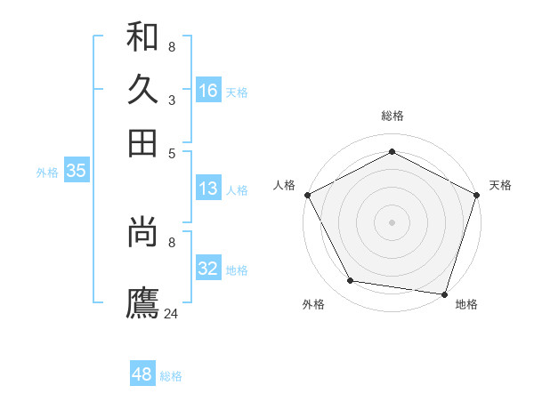 和久田 尚鷹さんを姓名の画数から五運を鑑定