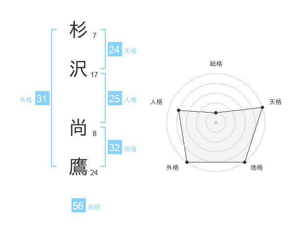 杉沢 尚鷹さんを姓名の画数から五運を鑑定