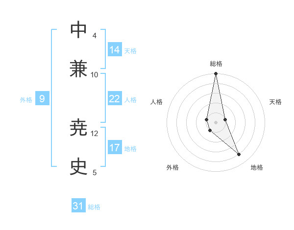 中兼 尭史さんを姓名の画数から五運を鑑定
