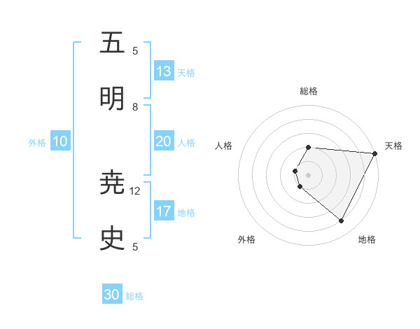 五明 尭史さんの総格は30画の2点!