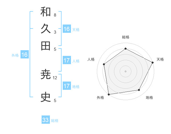 和久田 尭史さんを姓名の画数から五運を鑑定