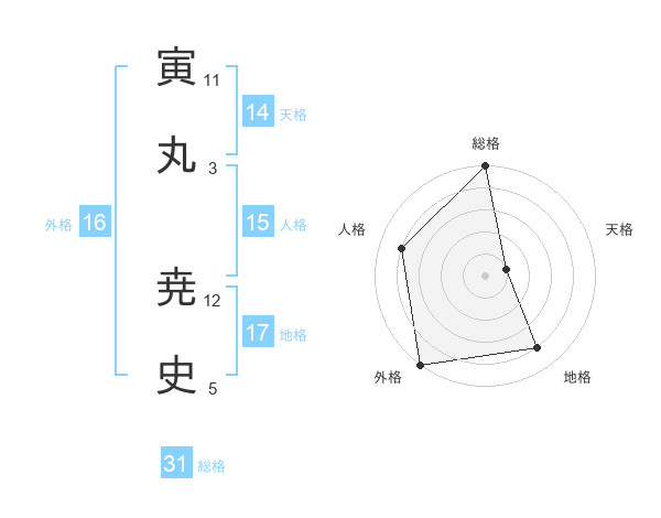 寅丸 尭史さんを姓名の画数から五運を鑑定