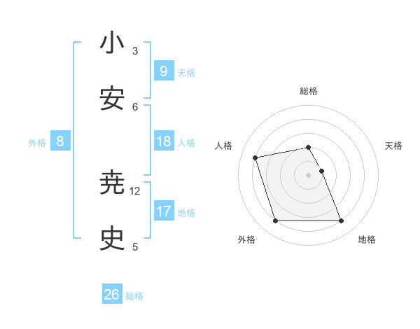 小安 尭史さんの総格は26画の2点!