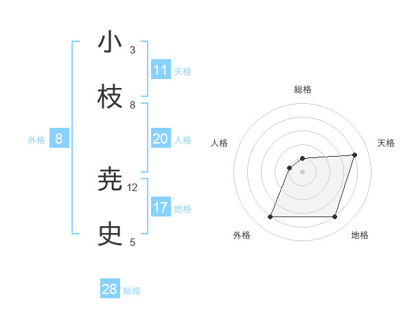 小枝 尭史さんを姓名の画数から五運を鑑定
